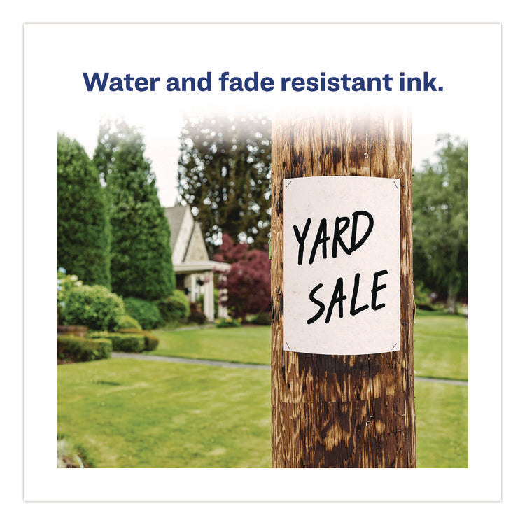 Leave your mark with these remarkable, water-, fade- and wear-resistant markers. Their ink sets into your chosen media quickly but won't dry out, even if you leave the cap off for up to 30 min. And as these large markers hold over 30% more ink than comparably sized alternatives, long-lasting performance is guaranteed. Durable tip eliminates the potential for fraying and is designed to leave clean, bold text. Ideal for almost every conceivable surface: paper, cardboard, metal, PVC, concrete, plastic, ceramics and more, they're an excellent choice for just about any scenario, from marking construction materials to labeling sports equipment to creating yard sale signs. Handy pocket clip makes it easy to carry a MARKS A LOT® marker wherever you go, whether you're off to the classroom, office, jobsite, factory floor or simply heading home. Low-odor and non-toxic.