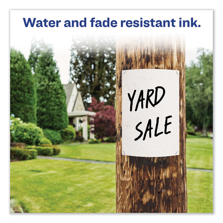 - Bold, quick-drying, water- and rub-resistant permanent ink.
