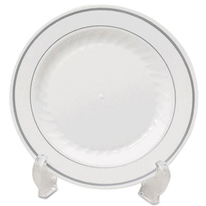 Masterpiece Plastic Dinnerware, Plate, 7.5" Dia, White/silver, 10/pack, 15 Packs/carton