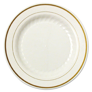 Masterpiece Plastic Plates, 6" Dia, Ivory/gold, 10/pack, 15 Packs/carton