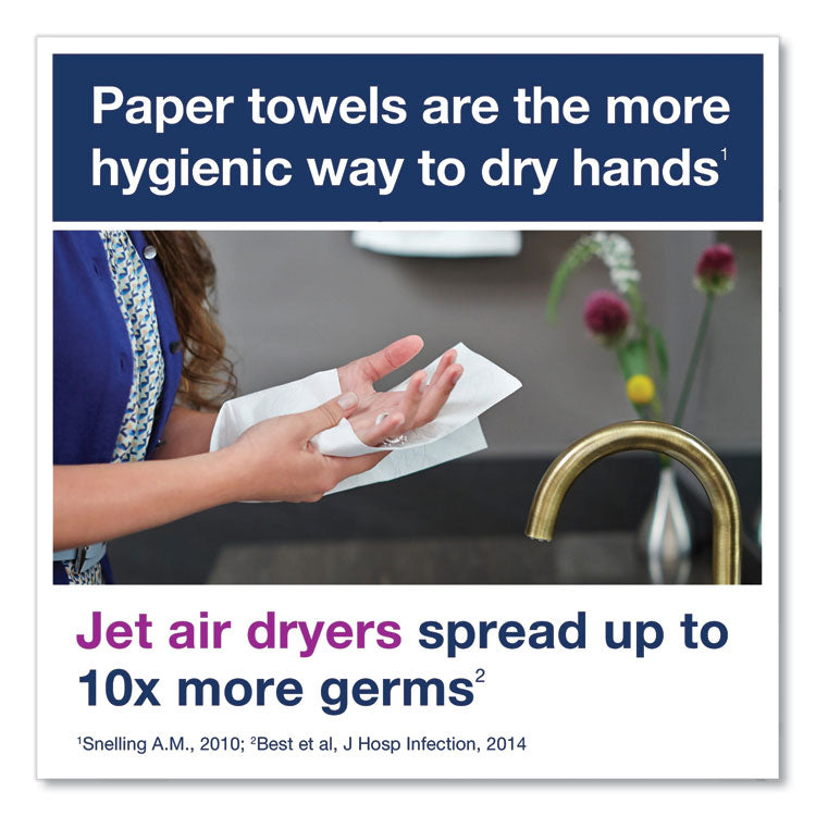 Tork® Universal Matic® Paper Hand Towel Roll offers the perfect combination of performance and value to control consumption. Designed specifically for the Tork Elevation® Matic® Hand Towel Roll Dispensers, this roll towel offers a high performing product for no-touch, hygienic dispensing systems. Developed for easy maintenance in high traffic washrooms. This towel saves time and controls consumption by one-at-a-time sheet dispensing. Embossing enhances hand feel and maximum absorbency, allowing fewer towels used per hand dry. Available in an Easy Handling® Carry Box.