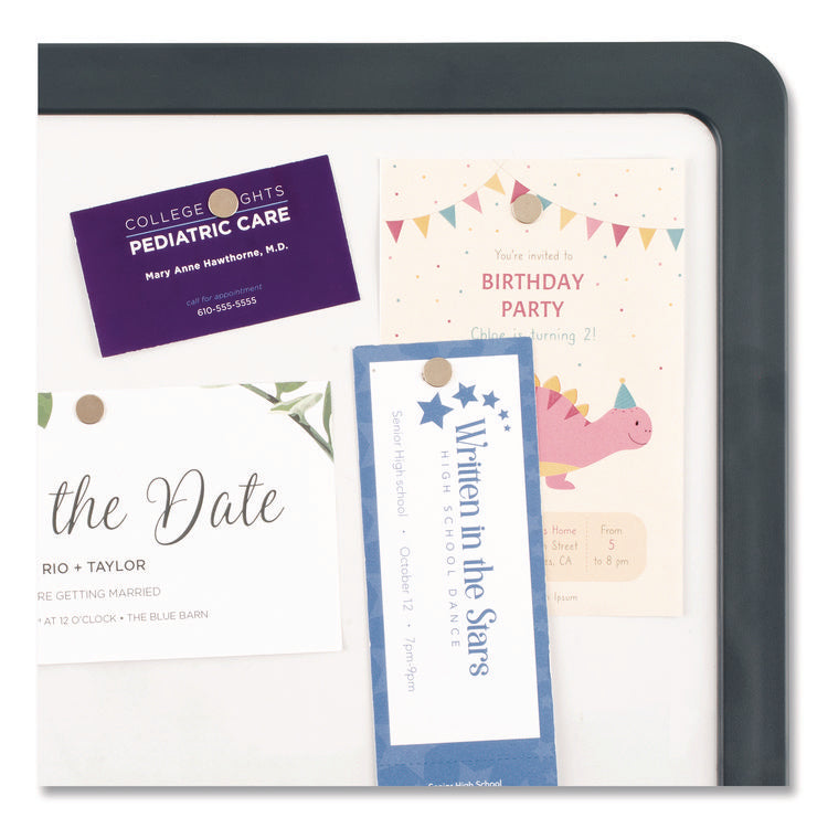 Post announcements, bills or visual aids on whiteboards with these round magnets. Their high-strength build provides sturdy placement of thick paper and card stock onto magnetic surfaces. Also suitable for marking, plotting line graphs and making DIY fridge decor. High-power magnets hold documents and signage to magnetic boards and signs. Each disc shaped magnet is 3/8" in size for discreet use. For use with boards and signs. Silver.