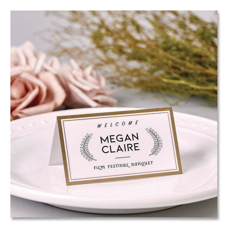 Matte White Metallic Gold Border Tent Cards, 3.5 x 2, 4 Cards/Sheet, 20 Sheets/Pack