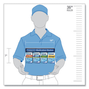 Convenient kit provides quick access to four of the most frequently used medications: ibuprofen, a non-aspirin pain reliever, aspirin and antacids. Handy medication station is an innovative and easy solution for dispensing common medications at the office. Medication boxes are individually replaceable. Includes a unique, easy-to-install grid system. Ideal for use in common areas, like as office kitchens and breakrooms.