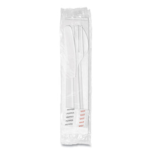 Medium Heavyweight Cutlery Kit, Fork/Knife/Napkin/Pepper/Salt/Spoon, Plastic, White, 250/Carton