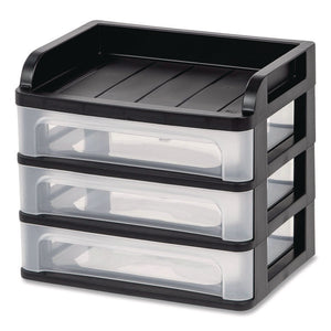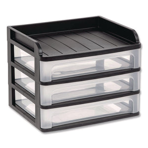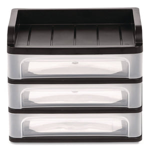 Medium Three-Drawer Desktop Storage, 3 Sections, Letter Size Files, 14.25 X 11.88 X 11.25, Black/clear