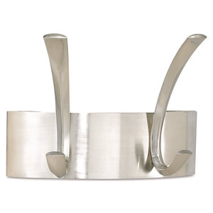 Metal Coat Rack, Wall Rack, Two Hooks, Steel, 7w x 4.5d x 5.25h, Brushed Nickel