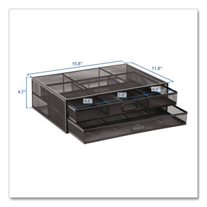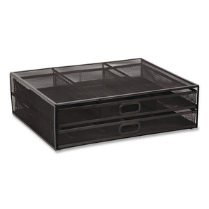 Boost your monitor and stow away the office essentials when you choose the MOUNT-IT! Metal Mesh Monitor Stand with Storage Drawers. Reap instant benefits from the improved ergonomics and the convenient, space-saving storage compartments. Sleek, lightweight, sturdy metal design supports up to 32" monitors, and its ventilated mesh weave helps keep your devices running cool. Pull-out drawers feature a compartmentalized system that's reminiscent of a traditional desk's pencil drawer tray.