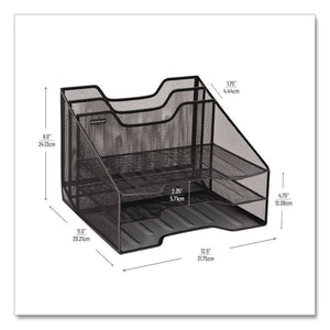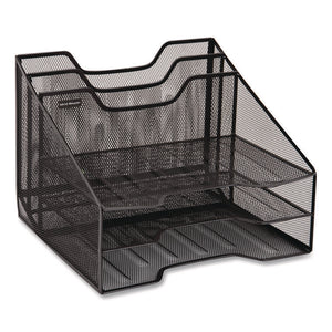 Simplify your life and ramp up your productivity with this efficient and versatile 2-tier, 5-compartment desktop and countertop organizer. Ready to use straight out of the box, it provides an immediate solution to your paper clutter, offering a home for your vital documents, mail and other miscellaneous papers. It's perfectly sized to accommodate all your letter- and A4-sized papers and folders, enabling you to consolidate your essential items in one central location for easy access and space optimization. Flexibility is at the heart of its design: dedicate the top tray to storing your pens, notepads or even electronic devices. Its lightweight nature allows for easy transport from your home office to your kitchen or any other room. This metal mesh organizer is an unobtrusive addition to your workspace. It makes an excellent gift for students embarking on their academic journey, organization enthusiasts or those looking to set up their home office. Coordinates with other Network Collection items to achieve a cohesive look in your workspace.