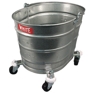Caster-equipped, compact oval bucket is very easy to maneuver. Embossed measurement gradations simplify mixing floor cleaning solutions. Galvanized steel with leakproof seams.