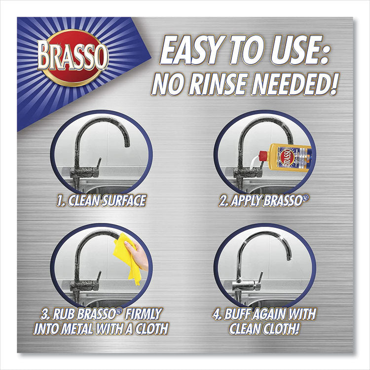 Clean, polish and protect brass, copper, chrome, stainless steel, pewter, bronze and aluminum. For a brilliant shine and a smooth, polished surface choose BRASSO. Use it on metal furniture, lamps, door handles, chrome and stainless steel trim, appliances, carpet rods, copper-bottom cookware, steel sinks and more.