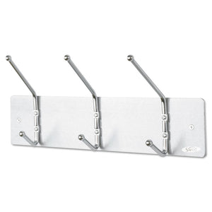 Metal Wall Rack, Three Ball-Tipped Double-Hooks, Metal, 18w x 3.75d x 7h, Satin