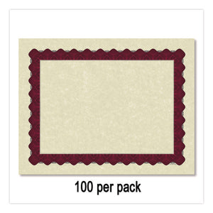 Metallic Border Certificates, 11 X 8.5, Ivory/red With Red Border, 100/pack