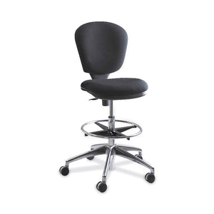 Safco Metro Extended Height Chair features a form-fitting contoured back, thickly cushioned seat and 360-degree rotation for all-day comfort. Pneumatic lever under seat provides easy height adjustment from 23" to 33" for a personalized fit. Waterfall seat edge and adjustable foot ring may help improve circulation by reducing pressure points in legs while seated. Heavy-duty, 5-star base features a chrome finish for a professional appearance. The dual tone swivel wheels work well on carpeting and smooth surfaces for optimum usability. This draft chair is ideal for use with standing-height desks and workstations in workrooms, meeting areas, home offices, mailrooms, warehouses, and conference areas.