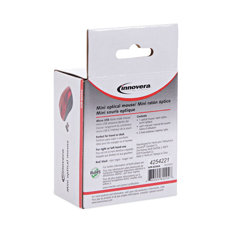 Mini Wireless Optical Mouse, 2.4 Ghz Frequency/30 Ft Wireless Range, Left/right Hand Use, Red/black