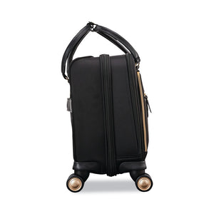 A luxe athleisure vibe is punctuated with gold toned hardware and handbag treatments, giving the product a sartorial flair. Feminine tailored shape, exposed zippers, and thoughtfully expressed organization, elevate our Mobile Solution Mobile Office from practical and functional to savvy and sophisticated. Features front organization pocket, dedicated packing compartment, wireless charging pocket and USB charging port. A padded compartment holds laptops up to 15.6" and an additional pocket can store a tablet. Multi-directional dual spinner wheels for easy mobility.