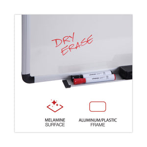 Stylish, durable, high-quality, wall-mountable dry erase board is an indispensable office addition that's perfect for occasional use. Melamine surface accepts all dry-erase markers and wipes clean with cloth, eraser, or dry erase wipes. Modern, contoured aluminum frame features attractive, protective, black, rounded, plastic corners. Extra-wide marker/eraser tray. May be mounted vertically or horizontally. Dry erase markers and erasers sold separately.