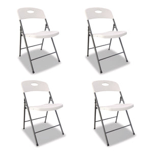 Molded Resin Folding Chair, Supports Up to 225 lb, 18.19" Seat Height, White Seat, White Back, Dark Gray Base, 4/Carton
