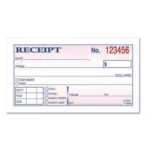 Money/Rent Receipt Book, Two-Part Carbonless, 4.88 x 2.75, 50 Receipts/Book, 3 Books/Pack