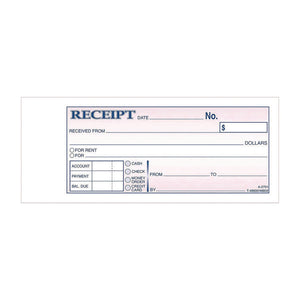 Money/Rent Receipt Book, Two-Part Carbonless, 6.69 x 2.75, 50 Receipts/Book, 5 Books/Pack
