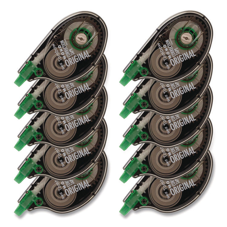 MONO Correction Tape, Gray/Clear Applicator, 0.17" x 394", White Tape, 10/Pack