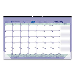 Monthly Desk Pad Calendar, 17.75 x 10.88, White/Blue/Green Sheets, Black Binding, Clear Corners, 12-Month (Jan to Dec): 2025