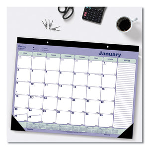 Monthly Desk Pad Calendar, 21.25 x 16, White/Blue/Green Sheets, Black Binding, Black Corners, 12-Month (Jan to Dec): 2025