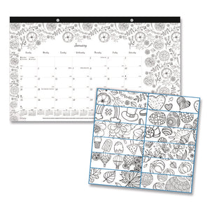 Monthly Desk Pad Calendar, DoodlePlan Coloring Pages, 17.75 x 10.88, Black Binding, Clear Corners, 12-Month (Jan-Dec): 2025
