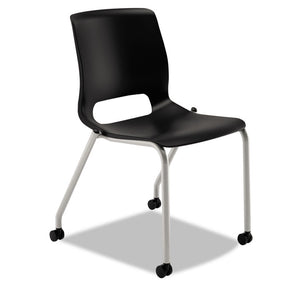 Motivate Four-Leg Stacking Chair with Plastic Seat, Supports 300 lb, 17.75" Seat Height, Onyx Seat/Back, Platinum Base, 2/CT