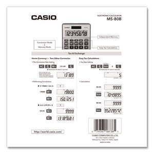 The Casio® MS-80B eight-digit desktop calculator meets a variety of business needs. Keep this calculator at your desk for whenever you need answers to math problems. Streamline financial calculations with tax calculation, currency conversion and profit margin functions. Can be operated from solar or battery power, so you can use the calculator both day and night. Three-key memory keeps often used figures accessible for faster calculations, Square root, rounding switch, sign change, grand total, and percent functions help you solve a variety of mathematical problems. Key rollover feature makes sure nothing is lost during high-speed input. Keys are made of plastic.