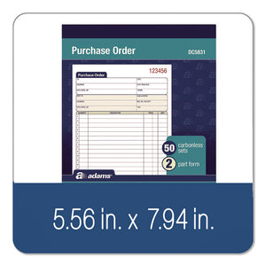 Easily keep hard copy records of each purchase order with the Adams® Multipart Purchase Order Pad. A comprehensive, preprinted layout features prompts for all the important details. With entry areas for purchaser, ship-to and administrative information as well as itemized order details, just about anything one might wish to capture can be accommodated. Carbonless, multipart format lets you provide a copy to the purchaser while keeping copies for yourself, and the pad's wraparound cover also allows you to place the front cover between sets as you fill out a form, minimizing the potential for write-through.
