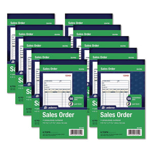 Perfect for keeping hard copy records of your sales, the Adams® Multipart Sales Order Pad features preprinted layout prompts for all the important details. With entry areas for point of sale, customer, order, terms information and more, anything one might wish to capture can easily be accommodated. Open area at top provides space for your company's logo, and the order form's carbonless, multipart format lets you provide a receipt to your customer while keeping clean, administrative copies. The pad's wraparound cover also allows you to place the front cover between sets as you fill out a form, minimizing the potential for write-through.