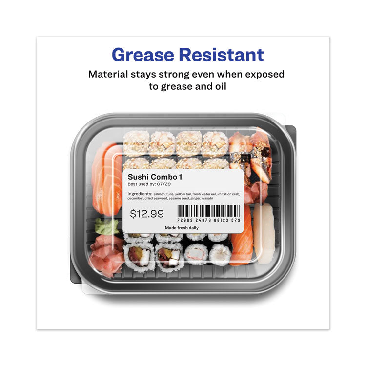 - Durable thermal labels are scratch-resistant, smudge-free and resist water, dirt, dust and grease.