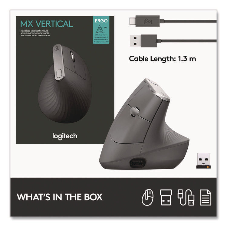 MX Vertical Advanced Ergonomic Mouse, 2.4 GHz Frequency/33 ft Wireless Range, Left/Right Hand Use, Graphite