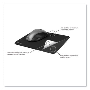 Features glue- and chemical-free assembly. Soft cloth surface provides maximum comfort and precise tracking. Non-skid base prevents it from sliding around your desk while mousing.