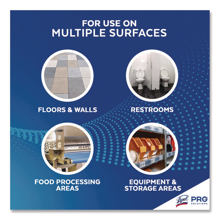 Optimize cleaning efficiency and meet high-volume sanitizing needs with Professional Lysol No Rinse Sanitizer Concentrate, ideal for use in food service and processing areas. Confidently uphold food code requirements with the no-rinse formula that's perfect for a 3-bin sink and clean-in-place applications. Effectively sanitize food and drink preparation and service areas, hospitals, nursing homes, physician offices, hotels, and more. Help staff keep commercial kitchens, storage areas, and restrooms sanitized. Save time and money with the economical, concentrated formula that can be diluted on-site for up to 512 gallons of sanitizing solution in eating establishment areas.