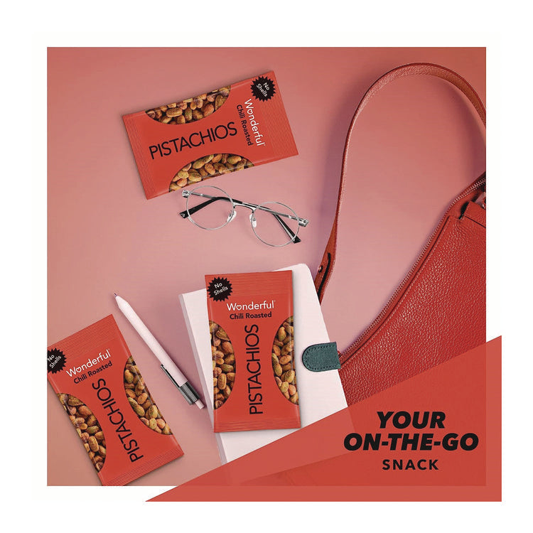 No Shells, Chili Roasted Pistachios, 2.25 oz Packet, 8 Packets/Box, 3 Boxes/Carton