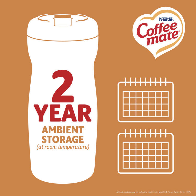 Stir up the perfect cup with Coffee mate, America's #1 creamer brand. Nestle Coffee mate powder creamer adds a rich, velvety smooth, classic creamer flavor to your cup of coffee. It is shelf stable with no refrigeration needed. Coffee mate powder creamer retains its delicious flavor at room temperature for up to 24 months. Find your perfect match with NESCAFE Coffee powder creamer. All Coffee mate foodservice powdered creamers are lactose-free, cholesterol-free, gluten free and kosher dairy. See the full Coffee mate ingredients statement for Coffee mate creamer ingredients. Coffee mate has your coffee creamer needs covered. Delight your employees, customers and guests by offering Coffee mate powdered creamer in your workplace, breakroom or kitchen.