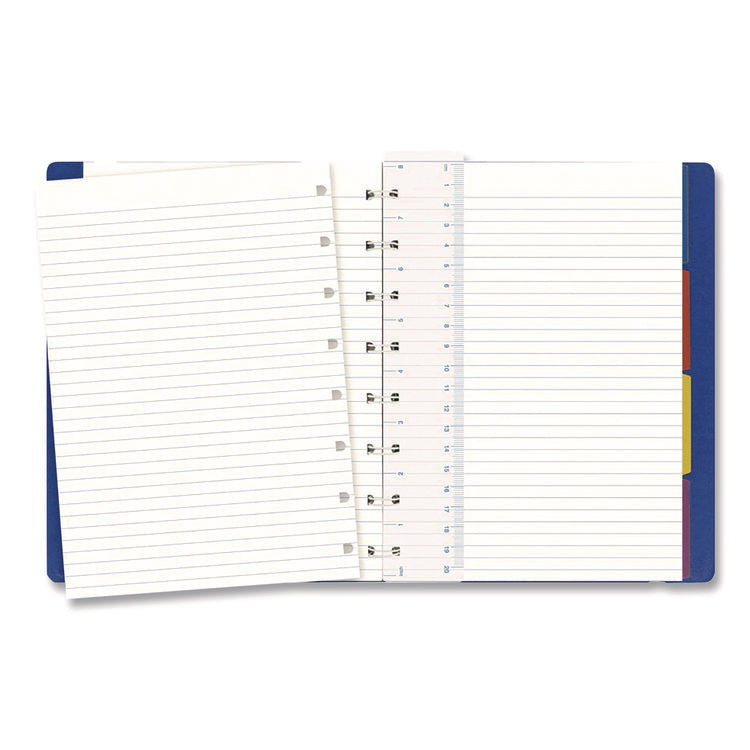Contemporary soft touch leather-look cover with elastic closure. Twin-wire binding allows book to lay perfectly flat and allows the cover to fold back 360 degrees. Innovative sheet binding allows the premium, cream-colored ruled paper to be repositioned to suit your personal needs.