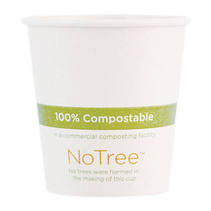 Made from rapidly renewable, unbleached sugarcane paper. No trees are used to make NoTree cups. Bio-lining made from plants creates a moisture barrier. Disposable, freezer safe, and contain no wax or plastic lining. Suitable for liquids up to 220°F. Great for warm beverages like coffee, tea, and hot cocoa. 100% compostable in two to four months in a commercial composting facility. Not microwavable.