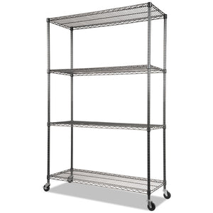 Nsf Certified 4-Shelf Wire Shelving Kit With Casters, 48w X 18d X 72h, Black Anthracite
