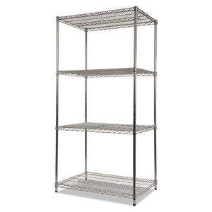 NSF Certified Industrial Four-Shelf Wire Shelving Kit, 36w x 24d x 72h, Silver