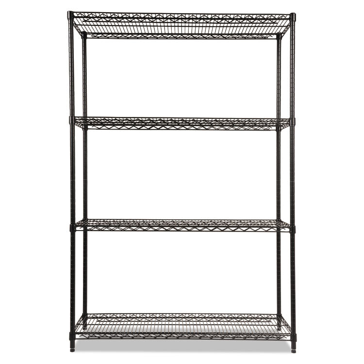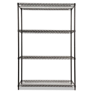 NSF Certified Industrial Four-Shelf Wire Shelving Kit, 48w x 18d x 72h, Black