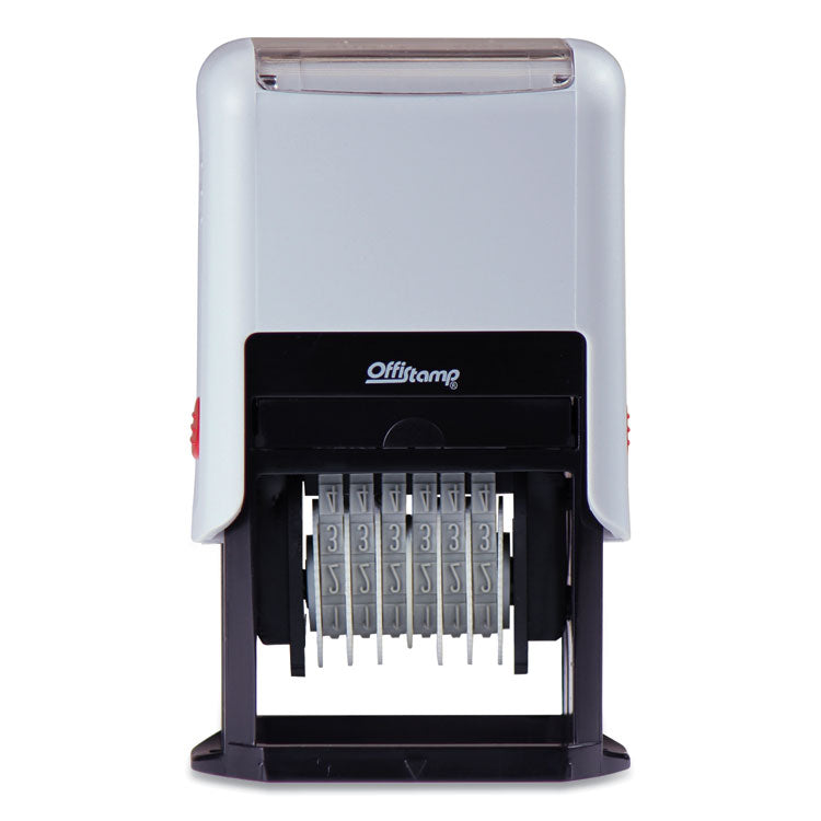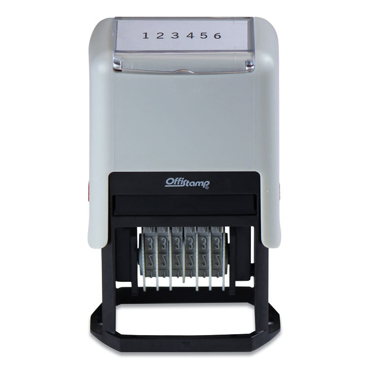 Speed through document processing by using this number stamp, which prints up to six digits. Featuring durable plastic construction, this self-inking number stamp comes with an extra replacement pad, ensuring years of continued reliable use.