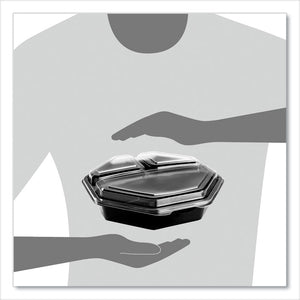 OctaView Hinged-Lid Cold Food Containers, 3 Compartments, 36 oz, 9.57 x 9.2 x 2.4, Black/Clear, Plastic, 100/Carton