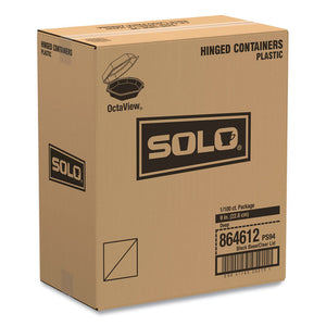 OctaView Hinged-Lid Cold Food Containers, 42 oz, 9.57 x 9.2 x 3.2, Black/Clear, Plastic, 100/Carton