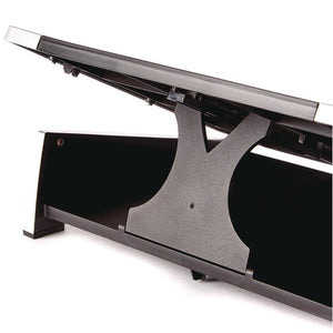 Fellowes Office Suites Laptop Riser features an adjustable tilt riser that provides the optimal keyboard level and viewing angle. Front bar holds laptop in place and keeps it from sliding forward. Durable plastic platform can support a 17" laptop or up to 10 lbs. Perfect for use in the office, home office, or wherever you would like to raise your laptop to a convenient position.