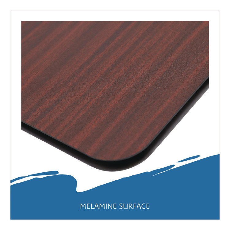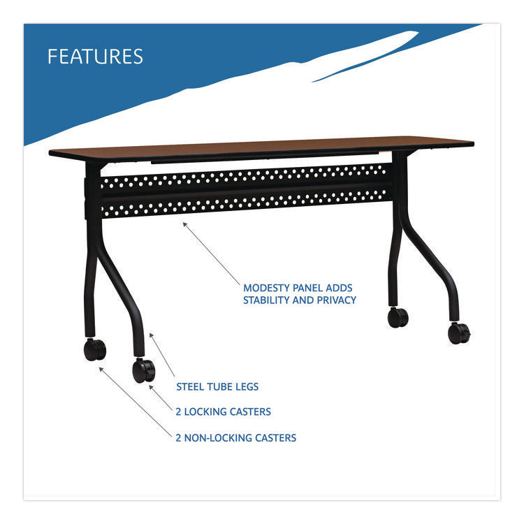 Functional, durable mobile training tables easily reconfigure to improve meeting productivity. Wear-resistant melamine top resists moisture and hot/cold temperatures. Includes perforated steel modesty panel. Strong, 1-1/2" offset dual legs for maximum legroom. Two locking casters and two non-locking casters for improved navigation over transoms.