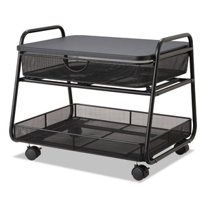 Onyx Under Desk Machine Stand, Metal, 1 Shelf, 1 Drawer, 1 Bin, 100 lb Capacity, 21" x 16" x 17.5", Black