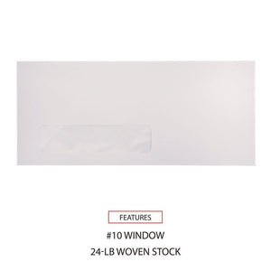 Business-weight, 24 lb stock gives this envelope a professional feel. Wove finish provides a crisp appearance. Fully gummed flap ensures a secure seal.
